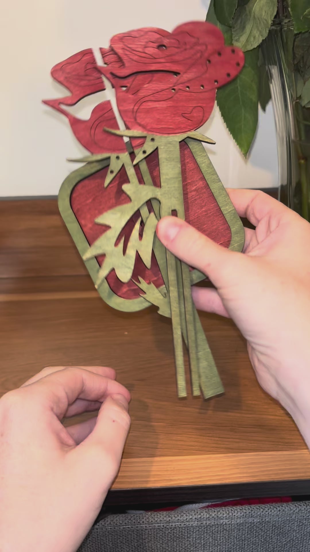 Designed with both beauty and convenience in mind, the rose disassembles into three flat pieces, making it easy to pack for travel or storage.